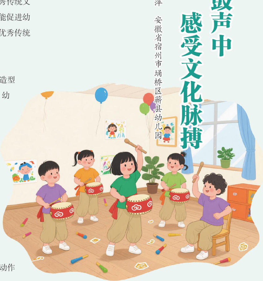 腰鼓作为承载民俗记忆的传统艺术形式,其视听特性与幼儿的认知特点高度契合。将腰鼓文化融入幼儿园课程,通过沉浸式建构让幼儿在深度体验中感知中华优秀传统文化的内涵,这样不仅能激发幼儿的学习兴趣,还能促进幼儿身体、认知、情感和社交素养的协同发展,为优秀传统文化的传承奠定基础。 幼儿园腰鼓课程的教育价值 兴趣激发:内在动机的培育。腰鼓的色彩、造型与节奏天然契合幼儿的感知偏好。初次接触时,幼儿通过触摸鼓面