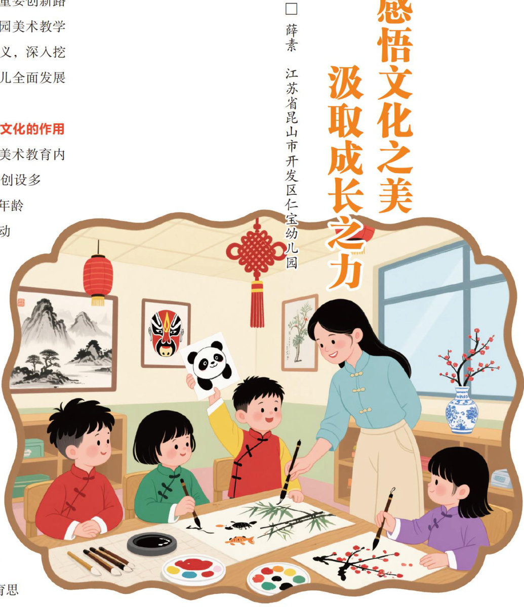 水墨画作为中华美学瑰宝,其以形写神的造型观与虚实相生的空间观,恰与幼儿“泛灵论”思维形成认知共振。在实践中,虽然多数幼儿园美术课程持续更新,但中华优秀传统文化渗透率仍显不足。如何让千年水墨“活”在当代课堂,成为教师需要探索的重要议题之一。 童心与墨韵的天然共鸣 水墨画的线性勾勒契合幼儿图式期表达特征。如《小蝌蚪找妈妈》中简笔游动的蝌蚪,幼儿能自然模仿其扭动的弧线;墨色“焦浓重淡清”的层次渐变,