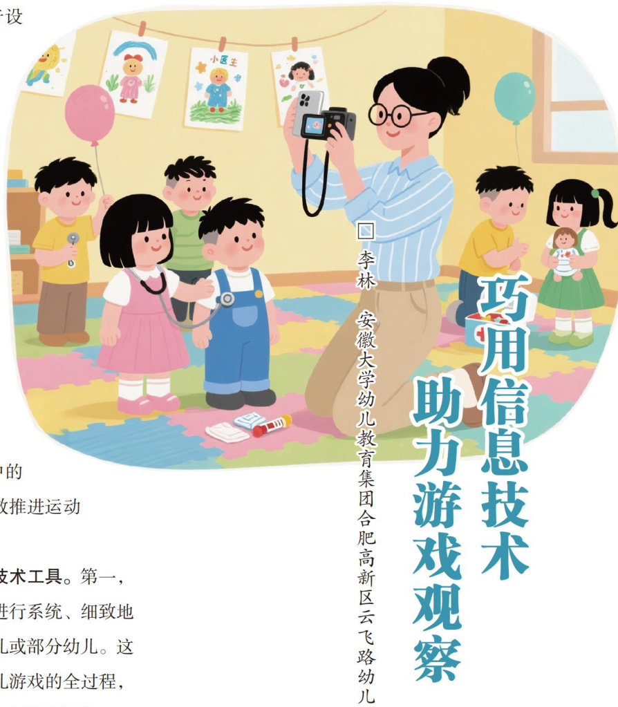 随着教育信息化的快速发展,信息技术在幼儿园教育中得到了广泛应用。信息技术可使教育教学形式灵活多变、内容展示精彩纷呈,提高教育教学活动对幼儿的吸引力。在幼儿游戏观察中,信息技术也发挥着重要作用,它有助于教师准确、细致、全面地观察和分析幼儿自主游戏行为,有效指导幼儿自主游戏活动,从而提高幼儿游戏水平。 运用信息技术观察记录幼儿自主游戏行为 引入多样化的信息技术工具。从便捷性与实用性角度出发,在幼儿