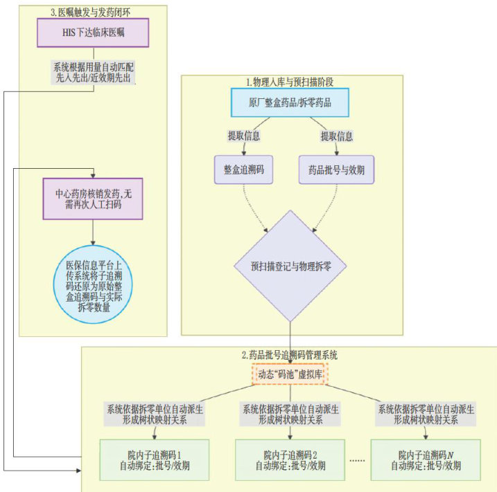 摘要目的 构建基于药品批号和追溯码融合的智慧药房全流程管理体系,解决中心药房拆零药品追溯码上传率低与追溯难的问题,提升中心药房精细化管理水平与用药安全。方法遵循FOCUS-PDCA框架(发现问题、组织团队、澄清现状、理解原因、选择方案-计划、执行、检查、处理),实施优化批号管理流程、引入“预扫描登记”技术及建立动态“码池”机制等举措,构建药品批号追潮码管理体系;并基于2025年 6-8 月的我院医保上传数据与业务运行指标,对比分析体系实施前后的管理效能差异。结果我院成功构建了药品批号追溯码管理体系,实现了住院药品特别是拆零药品的“一物一码”全流程与批号关联。应用该体系后,住院药品追溯码上传率为 100% ,显著高于我市其他三级医院住院药品平均上传率(最高仅为 23.22%,P<0.001) ;库存盘点误差率由 0.9% 降至 0.3% (降幅为 66.7% );日均调剂内部差错数量由1.43起下降至0.37起;临时医嘱平均调配时间( 14.75min 恢复至该体系实施前的常规水平( (14.42min )。结论该体系通过“预扫描登记-码池管理-闭环追溯”模式,实现了单个最小包装单位药品的可追溯,提高了追溯码上传率,在大幅降低发药差错率的同时,并不增加临时医嘱调配的时间成本,兼顾了效率与追溯闭环。