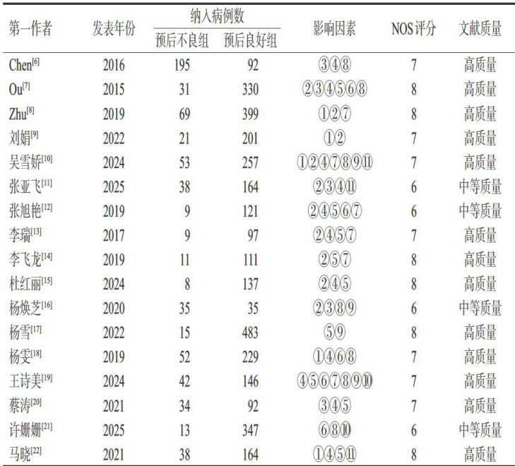 摘要目的系统评价中国人群药物性肝损伤(DILI)预后不良的影响因素,为DILI的早识别和早干预提供循证证据。方法 计算机检索PubMed、Medline、Embase、theCochrane Library、中国知网、万方数据、中国生物医学文献数据库和维普网,收集DILI患者预后不良影响因素的临床研究(病例对照研究、队列研究),检索时限为建库至2025年5月31日。筛选文献、提取资料、评价文献质量后,采用RevMan5.4软件进行Meta分析。结果共纳入17篇文献,涉及4078例DILI患者,其中预后不良组673例、预后良好组3405例。Meta分析显示,有肝病史( 0R=2.47,95%CI 为 1.61~3.78,P<0.001? 、有饮酒史 (OR=1.77,95%CI 为 1.22~2.56 ,P=0.003 )、使用中草药/中成药 OR=1.87,95%CI 为 1.30~2.70,P<0.001 )、非肝细胞损伤型DILI( OR=1.70,95%CI 为 1.37~ 2.10,P<0.001 )国际标准化比值(INR)升高 (OR=2.51,95%CI 为 1.97~3.19,P<0.001 、丙氨酸转氨酶(ALT)升高( OR=1.27 95%CI 为 1.14~1.41 P<0.001 )是DILI预后不良的危险因素,血清白蛋白(ALB)升高 (OR=0.47,95%CI 为 0.39~0.57,P< 0.001)、凝血酶原活动度(PTA)升高 (OR=0.88,95%CI 为 0.85~0.91,P<0.001) 、保肝药 >2 种 (OR=0.62,95%CI 为 0.41~0.95 P=0.030 )是DILI预后不良的保护因素。结论 有饮酒史、有肝病史、INR升高、ALT升高、使用中草药/中成药、非肝细胞损伤型的DILI患者预后不良风险较高,ALB水平升高、PTA升高、使用保肝药超过2种能降低DILI患者预后不良的发生风险。
