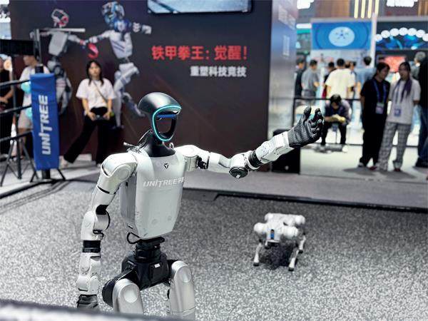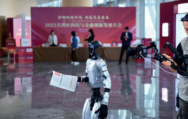 第二十届中国经济论坛平行论坛——2025 大湾区科技与金融创新发展大会场外的机器人展示。宋春雨I 摄 11月18日,第二十届中国经济论坛平行论坛——“2025大湾区科技与金融创新发展大会”在广东广州南沙国际会展中心举办。此次活动汇聚了券商、基金、银行、期货、上市公司、科技企业等领域近250名从业人士、专家、学者,以嘉宾主题分享传递行业生态前沿洞察,以精彩的“头脑风暴”展现“科技+金融”的一线创新