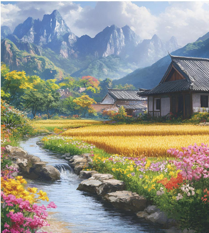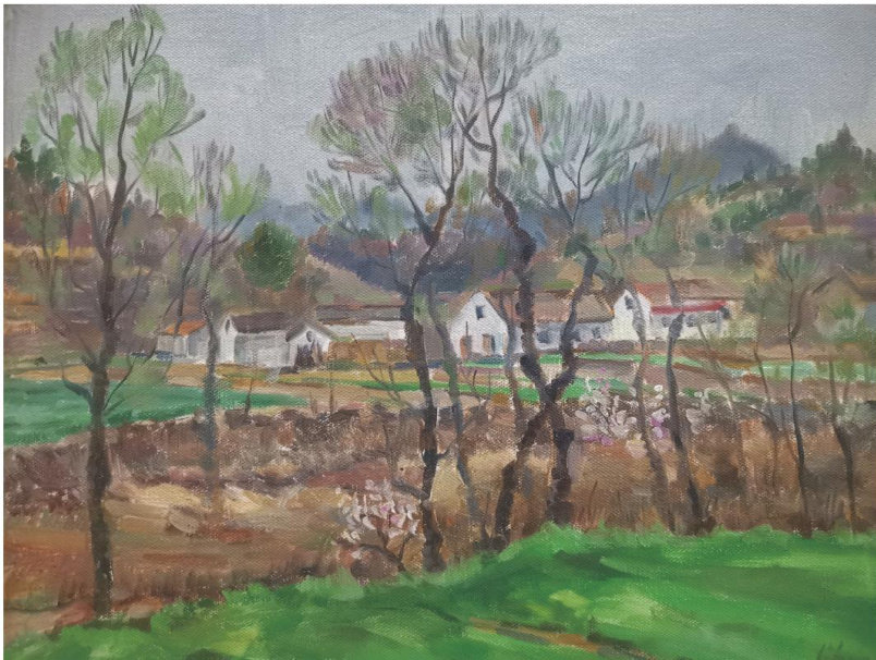 《南郑风光》布面油画 尺寸:40cm×50cm 《山乡春韵》布面油画 尺寸:60cm×80cm