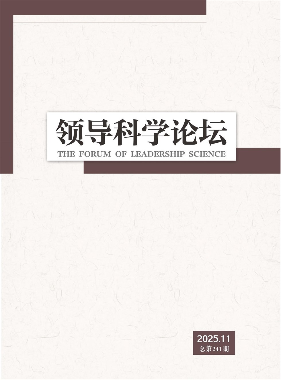 《领导科学论坛》杂志是反映我国教育界研究领导科学理论、实践科学领导最新成果的综合性期刊。中国高校领导科学第一刊,名列中国期刊方阵“双效”期刊、湖北省优秀期刊,由湖北教育报刊传媒有限公司、湖北省高等学校领导科学研究会主办。它坚持以马克思主义为指导,学习实践科学发展观,宣传领导科学理论,传递领导科学学术信息,推进领导科学学科建设,提供领导实践的经验教训,研究领导工作的文韬武略,探索领导人才的成败得失,提高干部领导科学发展能力,努力实现科学领导。既有前沿理论探讨,又使读者喜闻乐见。注重时代性、前瞻性、科学性、可读性和实践性,力求办出特色,办出水准。