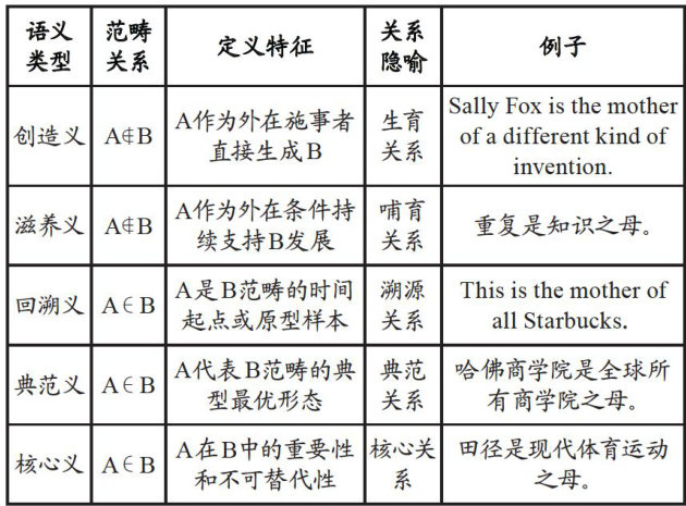 【摘要】英汉“Abethemotherof B? 与“A是B之母”隐喻构式均涉及亲属关系范畴“母亲”这一概念的隐喻,且形式相对应。本文探究了两构式语义特征上的异同及其异同背后的认知理据。通过分析美国当代英语语料库和北京大学现代汉语语料库数据发现,其共性为两构式都通过隐喻传达了创造义、滋养义、典范义以及核心义;而且“母亲”这一形象都包含褒义、贬义和中性三种含义。其差异主要表现为两构式的语义数量以及“母亲”形象的褒贬比例。