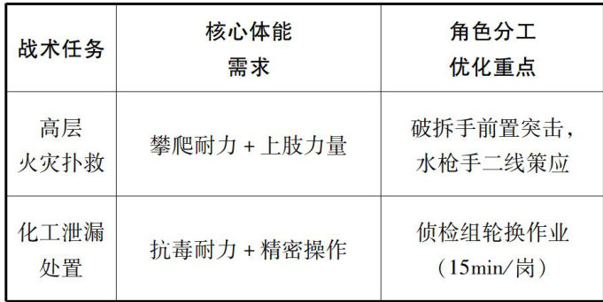 摘要:消防员体能训练标准是保障灭火救援任务安全、高效开展的重要基础。在实战作业中,灭火效率的高低与消防员体能训练水平密切相关。装备配置、火场适应能力、团队协作效能以及后勤保障水平等因素,均会从不同维度影响体能训练标准的制定与执行,并最终反映在灭火作战的实际效果中。为增强二者之间的正向关联,本文从装备优化、环境适应性训练、团队协同能力提升以及科学恢复保障等方面提出系统性建议,通过多维度联动机制,推动消防员灭火实战能力的整体提升。