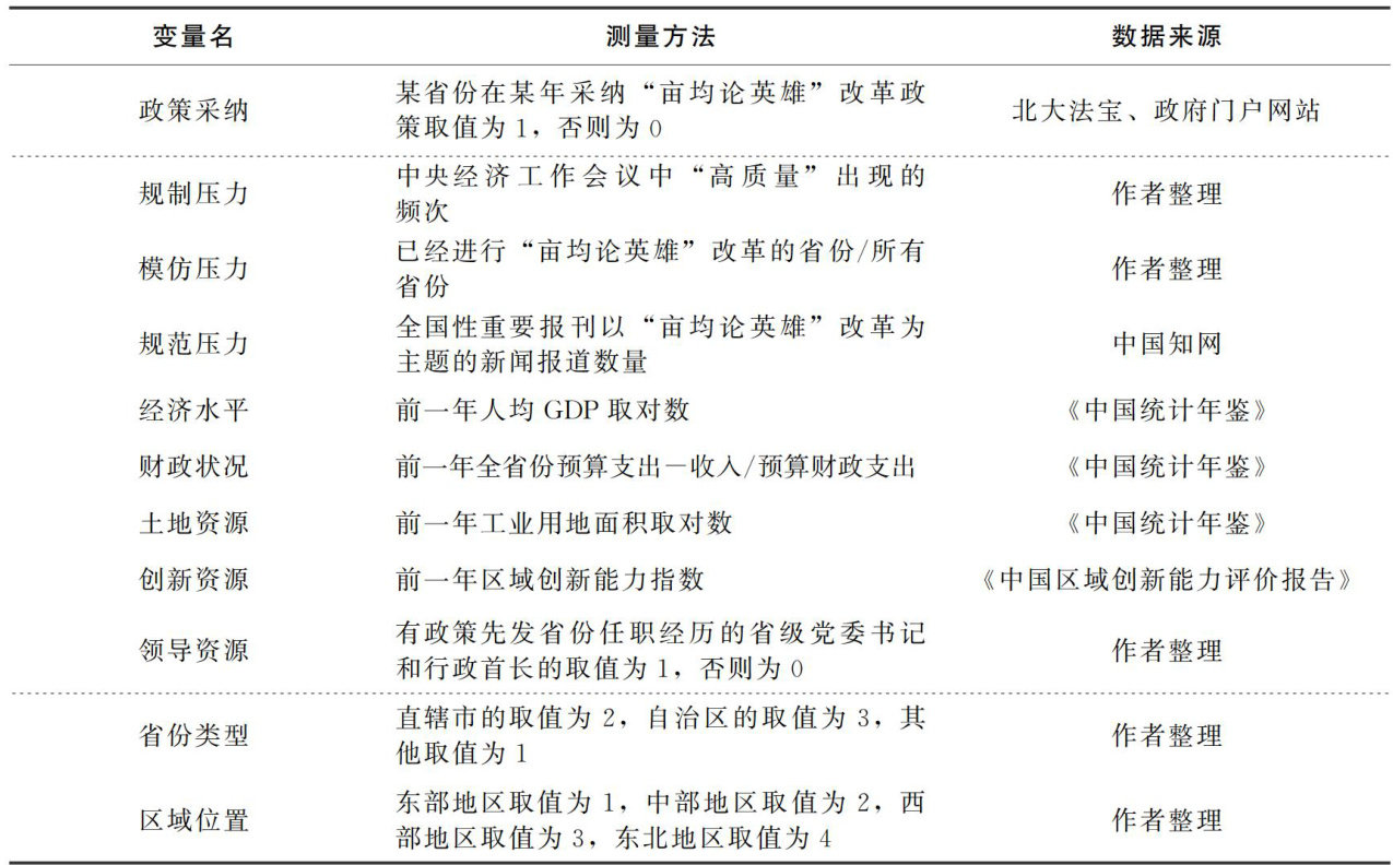 摘要:“亩均论英雄”改革是我国突破经济发展资源约束,提高全要素生产率,推动高质量发展的重要政策实践。基于新制度主义和资源基础理论双重视角,搜集2013—2023年全国31个省份的面板数据,运用事件史分析(EHA)揭示多重制度压力、地方资源基础对“亩均论英雄”改革创新扩散的影响机制。“亩均论英雄”改革在时间维度上呈现出S型累积分布曲线,在空间维度上表现为自东部沿海省份向中西部省份扩散的趋势;在多重制度压力机制中,同级省份的模仿压力对改革的采纳起到正向推动作用,地方发展竞争实质上演变成了政策竞争;在地方资源影响机制中,经济发展水平、财政健康状况、工业用地面积以及政策经验型领导资源对改革的采纳具有显著的正向影响。因此,要加强地方“亩均论英雄”改革的分类指导、利用数字化手段赋能改革、鼓励跨区域的政策学习和开展干部交流等。